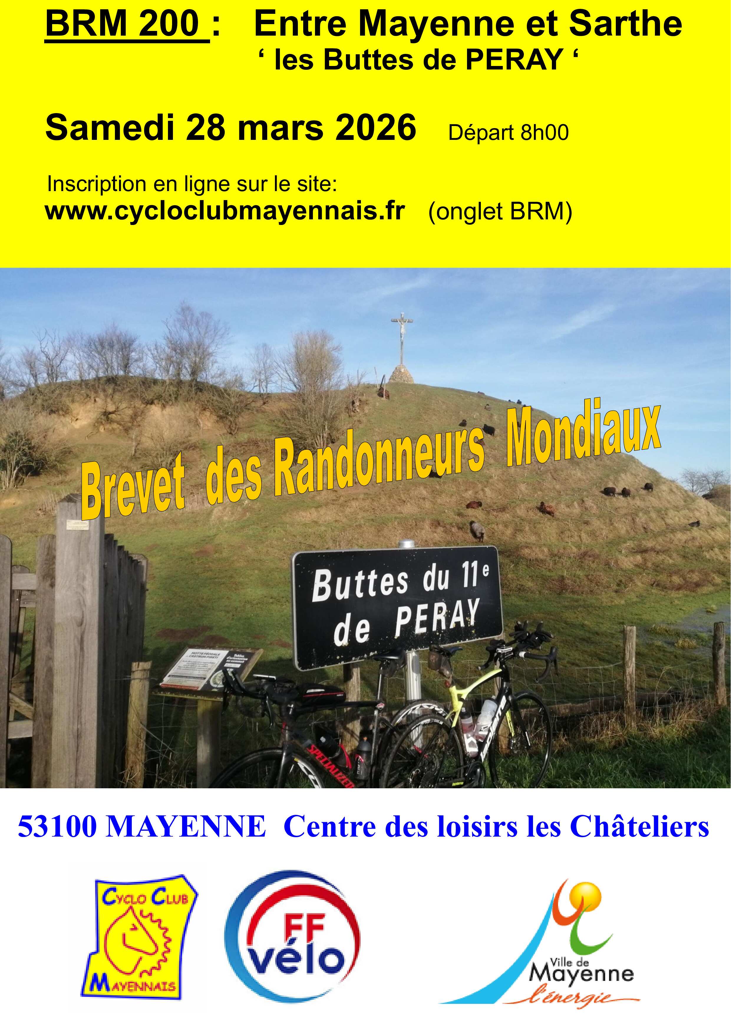 - Organisation BRM 200 « Entre Mayenne et Sarthe » (les Buttes de Peray) le 28 mars 2026