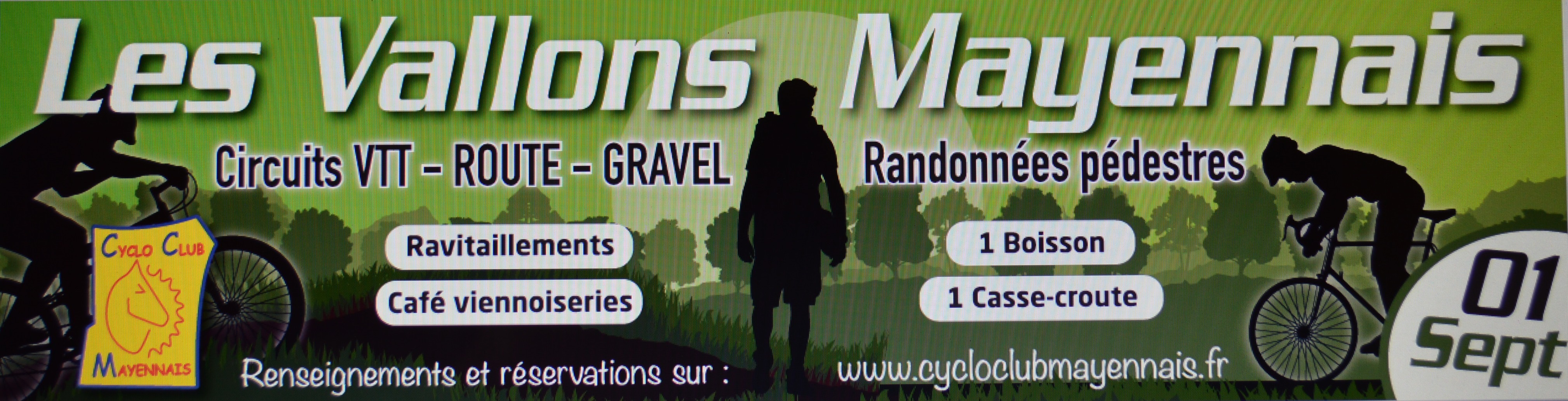 Inscription en ligne: https://www.helloasso.com/associations/cyclo-club-mayennais/adhesions/26e-vallons-mayennais